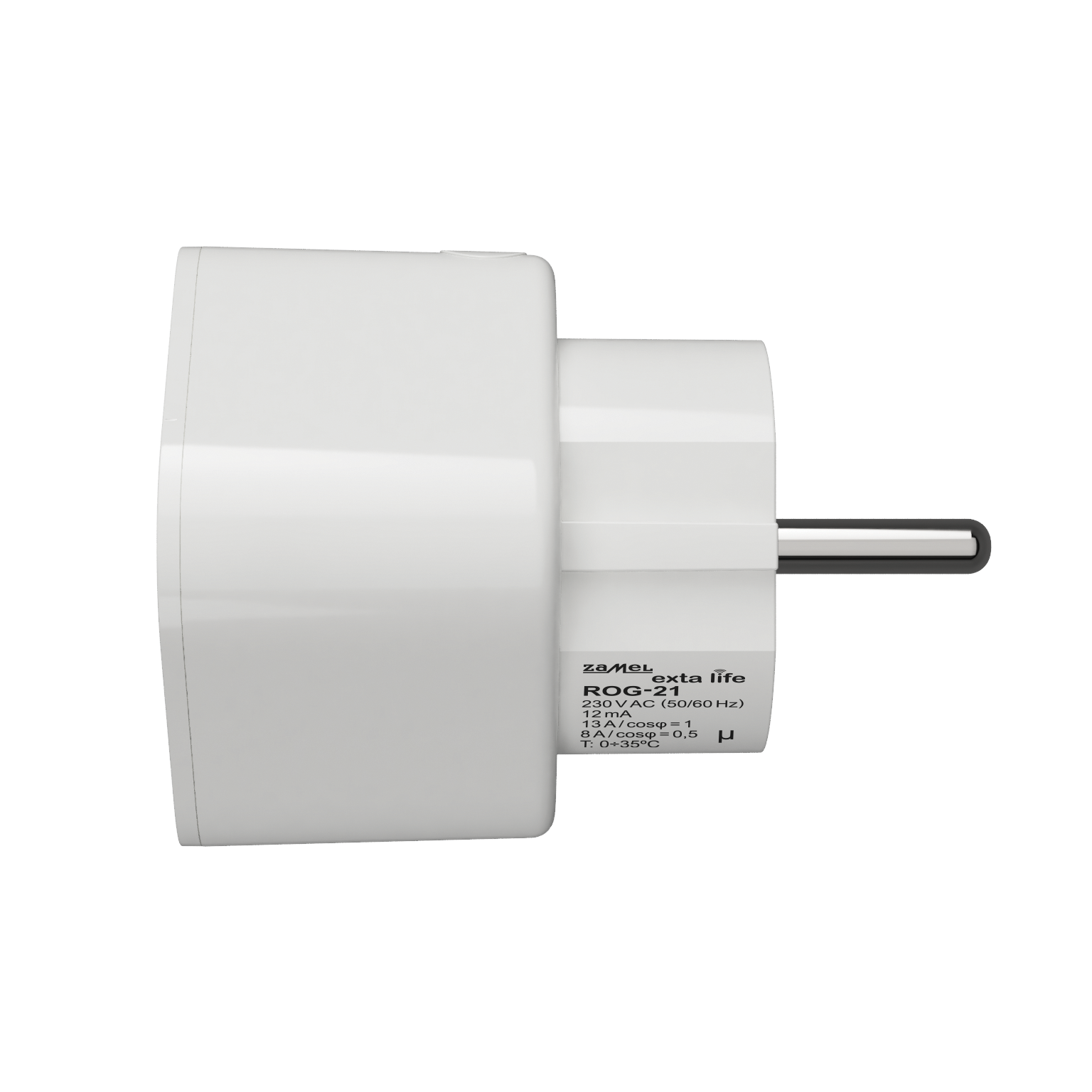 Radiowe gniazdo ROG-21 to element końcowy systemu Exta LIife, który umożliwia sterowanie dowolnymi odbiornikami w domu lub biurze. Współpracuje z urządzeniami o napięciu 230 V AC i maksymalnym obciążeniu 13 A. Aktualny stan sterowanego urządzenia oraz wartość pobieranej przez niego energii elektrycznej wskazywany jest w aplikacji mobilnej.