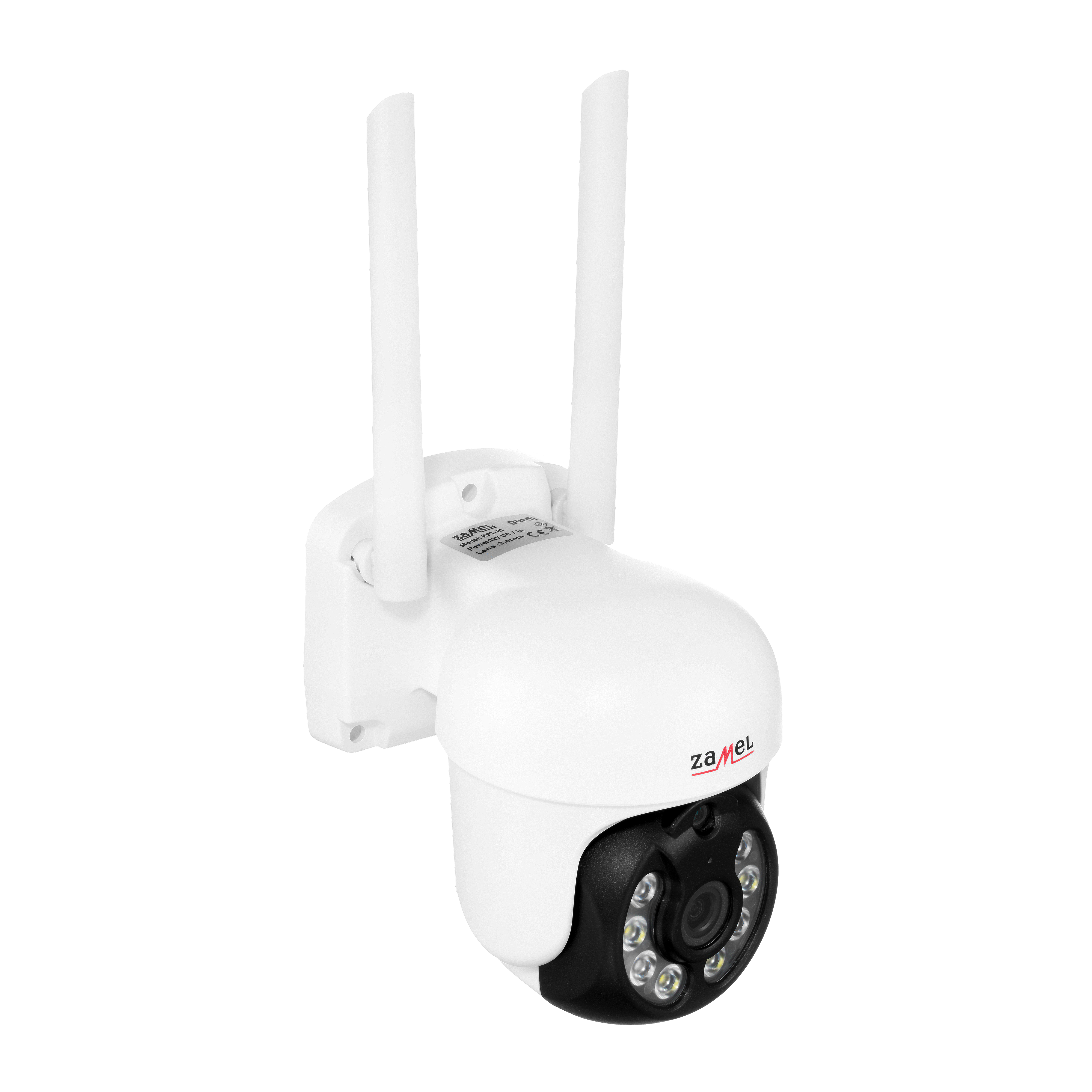 Kamera obrotowa (320° poziom / 90° pion) z matrycą 3 MP (2048 x 1536 px) zapewnia wyraźny obraz w dzień i w nocy – dzięki podświetleniu diodami IR i LED (przełączane tryby). Umożliwia zdalny podgląd i sterowanie przez aplikację Navi Home (TUYA Cloud) na Android i iOS. Wbudowany mikrofon i głośnik pozwalają na dwukierunkową komunikację audio. Nagrania zapisywane są na karcie microSD (do samodzielnej instalacji).