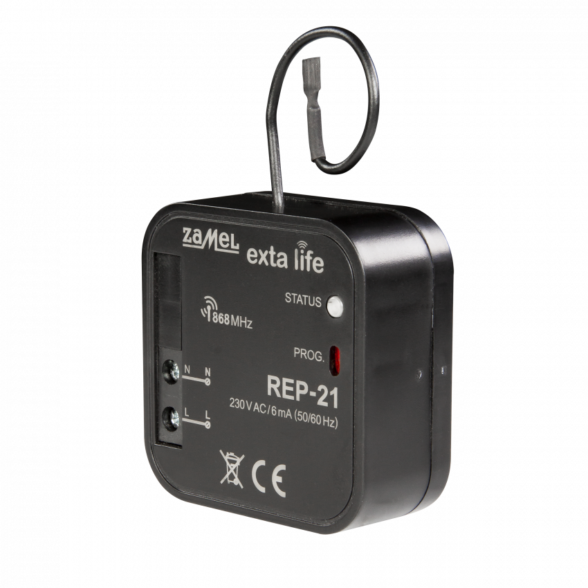 Retransmiter REP-21 zwiększa zasięg działania urządzeń pracujących w systemie Exta Life. Dotyczy to zarówno komunikacji pomiędzy: odbiornikami, czujnikami i nadajnikami, a kontrolerem EFC-01 oraz bezpośredniej komunikacji pomiędzy nadajnikami radiowymi a odbiornikami systemu Exta Life (bez kontrolera). Pojedynczy retransmiter zwiększa zasięg działania o około 250 m w terenie otwartym.