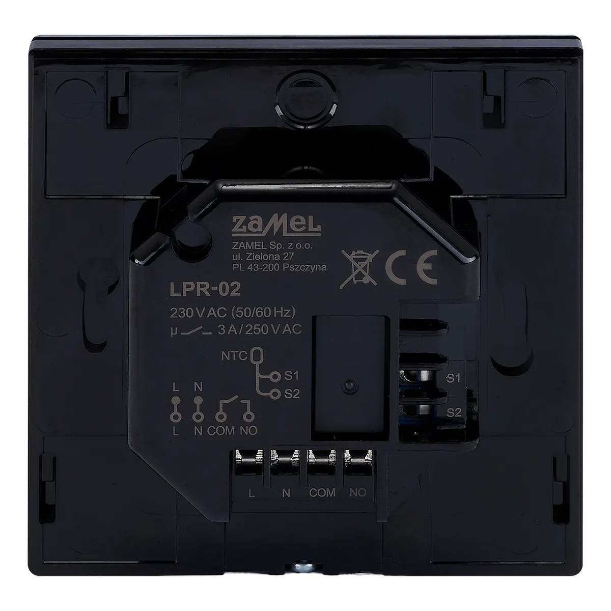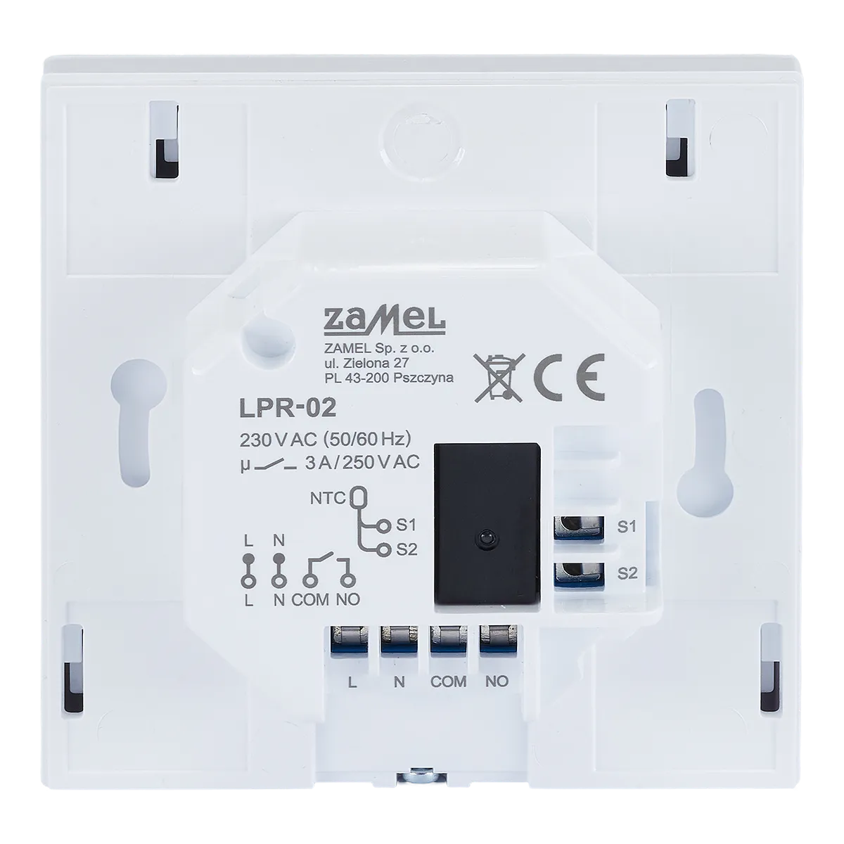 LPR-02 to regulator zasilany napięciem 230 V AC przeznaczony do montażu podtynkowego w puszkach Ø 60. Zadaniem regulatora jest utrzymywanie komfortu cieplnego w pomieszczeniu w cyklu dobowym na bazie dwóch temperatur: nocnej (Lo) i dziennej (Hi). Regulator łączy się przewodowo z listwami ogrzewania podłogowego lub innymi urządzeniami grzewczymi takimi jak: kotły gazowe, pompy.