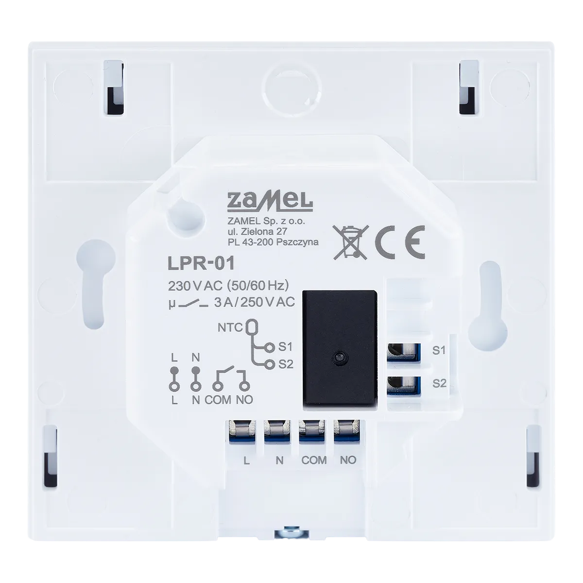LPR-01 to regulator zasilany napięciem 230 V AC przeznaczony do montażu podtynkowego w puszkach Ø 60. Zadaniem regulatora jest utrzymywanie komfortu cieplnego w pomieszczeniu na podstawie jednej temperatury zadanej. Regulator łączy się przewodowo z listwami ogrzewania podłogowego lub innymi urządzeniami grzewczymi takimi jak: kotły gazowe, pompy.